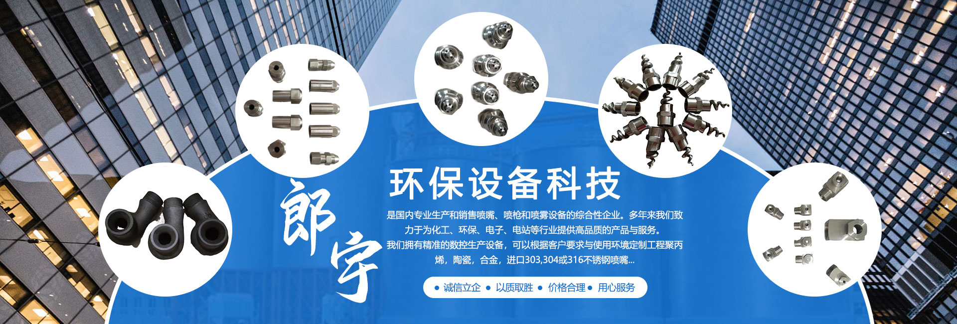 濟寧郎宇環保設備科技有限公司位于孔孟之鄉,禮儀之邦的山東省濟寧市,是國內專業生產和銷售噴嘴、噴槍和噴霧設備的綜合性企業。多年來我們致力于為化工、環保、電子、電站等行業提供高品質的產品與服務。 我們擁有精準的數控生產設備,可以根據客戶要求與使用環境定制工程聚丙烯,陶瓷,合金,進口303,304或316不銹鋼噴嘴。 我們的經營理念:誠信立企 以質取勝 價格合理 我們的技術理念:精益求精 技術創新 追求品質